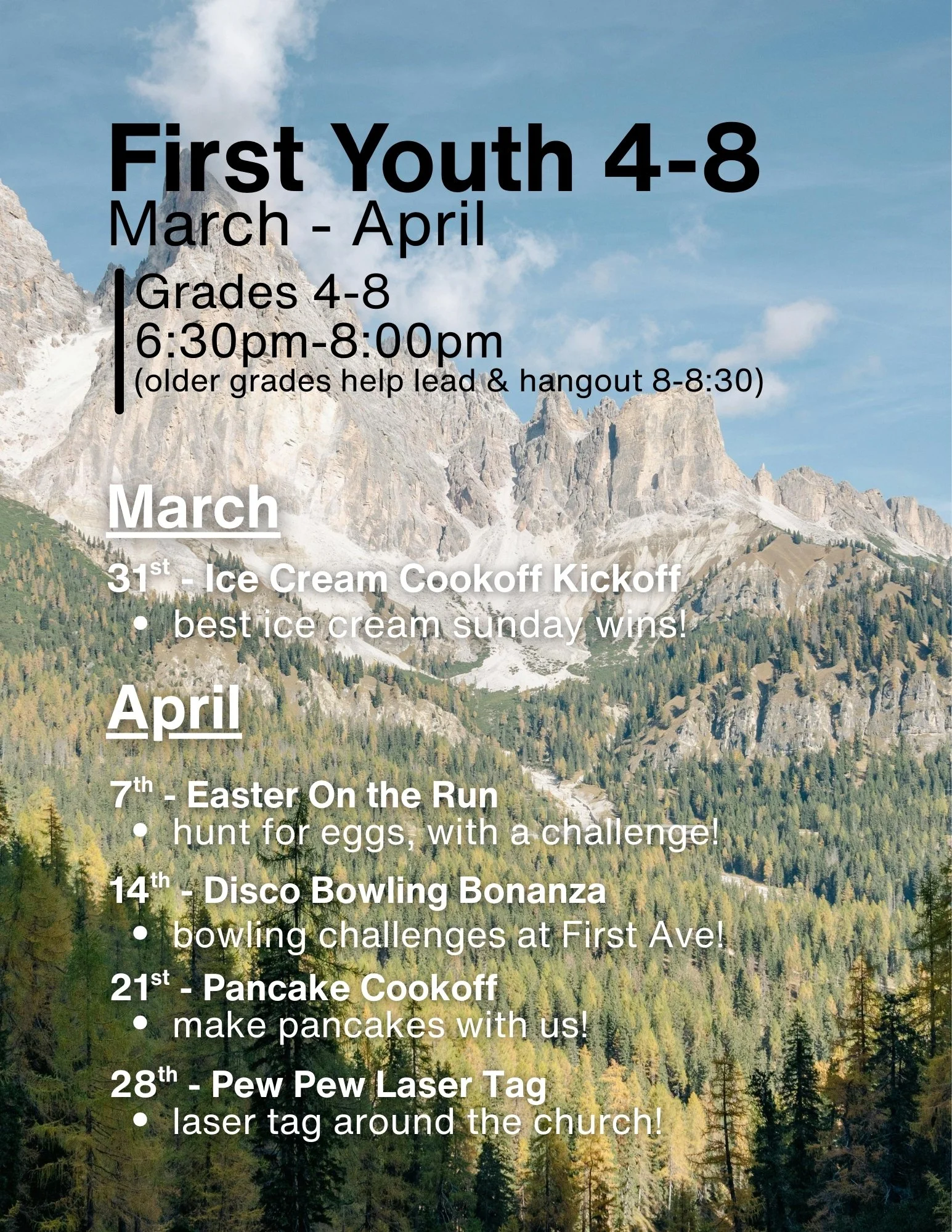 We want you to know what’s happening at youth, too. If you have any questions or concerns, feel free to reach out to Pastor Mathew!